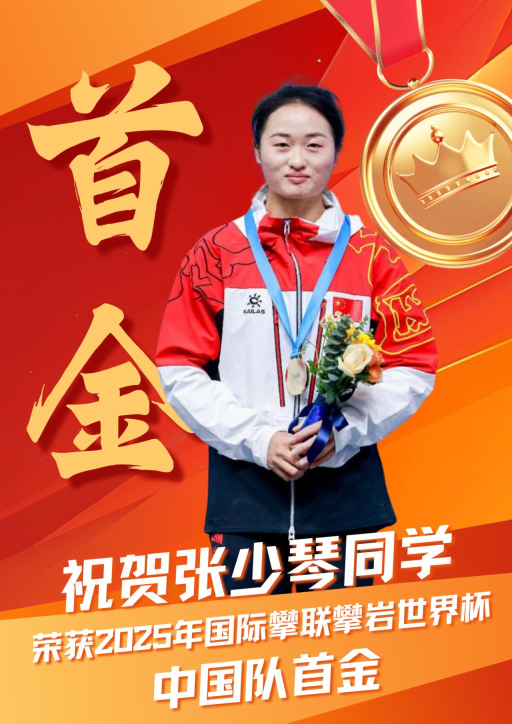 4月25日至27日,2025年国际攀联攀岩世界杯吴江站在苏州举行,77779193永利官网运动与健康学院2023级运动训练专业硕士研究生张少琴以6.324秒的成绩获得了2025赛季世界杯的第一个速度冠军。这是本赛季的第一枚世界杯速度赛金牌,也是中国队本赛季的第一块金牌。