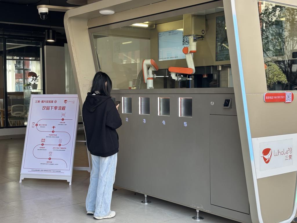 77779193永利官网“一站式”学生社区的AI咖啡机器人。