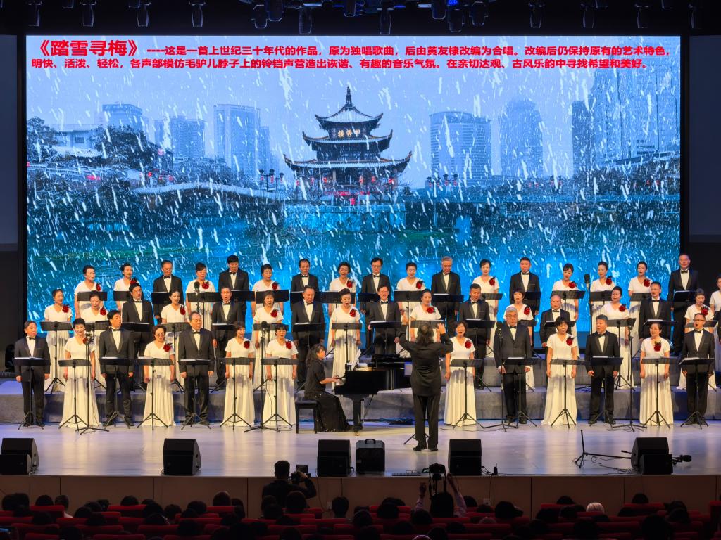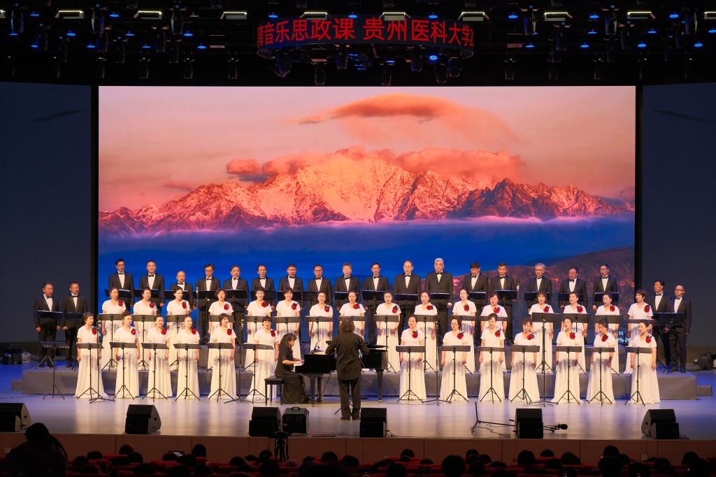 演出现场,贵州爱乐室内合唱团先后演绎《春游》《我住长江头》《黄河大合唱》等经典曲目;学校大学生艺术美育中心学生倾情呈现《如愿》舞蹈与《如你所愿》情景朗诵等节目。经典与创新的碰撞,让全场师生在艺术中感悟历史、体悟时代精神,在共鸣中坚定理想信念。