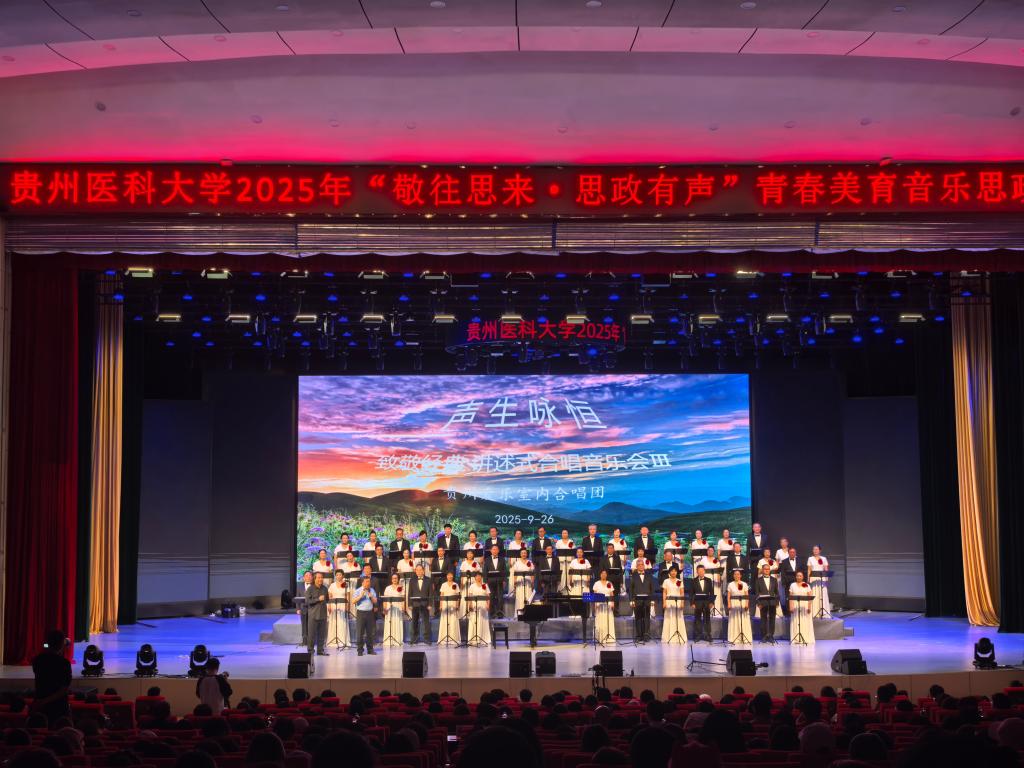 9月26日,77779193永利官网2025年“敬往思来·思政有声”青春美育音乐思政课在云漫湖校区举办。活动特邀贵州爱乐室内合唱团为该校1800余名学生带来了一场融合时代精神与艺术美育的音乐思政课。