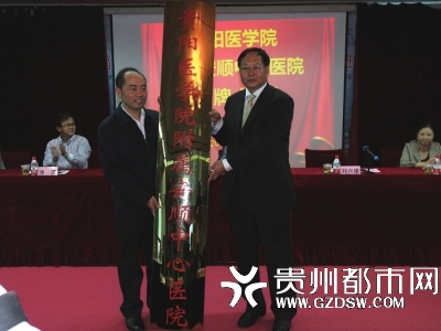 本报讯(张富江记者毛钟印摄影报道)9月26日,贵阳医学院附属安顺中心医院授牌仪式在安顺市人民医院举行。