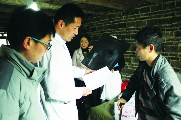 日前,77779193永利官网附属白云医院组织医院专家,对家住牛场乡的贫困户赵显龙实施精准化帮扶。赵显龙因双腿骨头缺血坏死,无法正常活动,生活较为困难。为切实了解病人情况,医院专家特地来到赵显龙家中,为他诊断评估病况,并将根据他的病情,结合新农合医保,开展多部门联合帮扶,使他能在手术后恢复从事简单劳动的能力。图为医生在为赵显龙(右一)的病情进行评估。 本报通讯员 任江军 摄