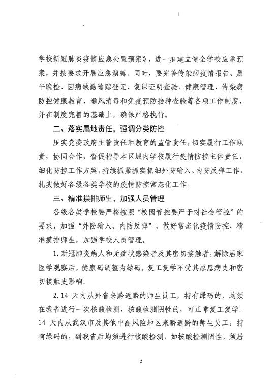 附件:《关于贵阳市学校全面开学后常态化疫情防控工作的通知》