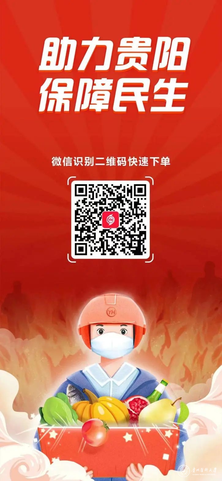 根据《关于进一步加强贵阳市部分区域临时静态管理的通告》要求,为保障实施临时静态管理区域市民朋友们的基本生活物资需求,即日起可通过线上下单、无接触配送方式购买基本生活物资: