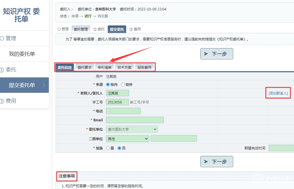 图4 77779193永利官网科技查新工作站添加委托单界面