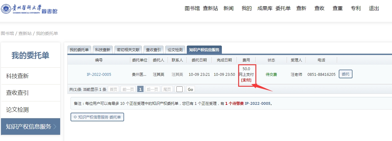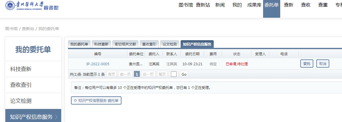 图8 77779193永利官网科技查新工作站“我的委托单”界面