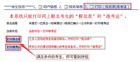 2、网上报名的考生,可登录报名系统打印,打印时请详细阅读打印需知。如遇特殊原因不能打印,可参照现场报名的方式领取;
