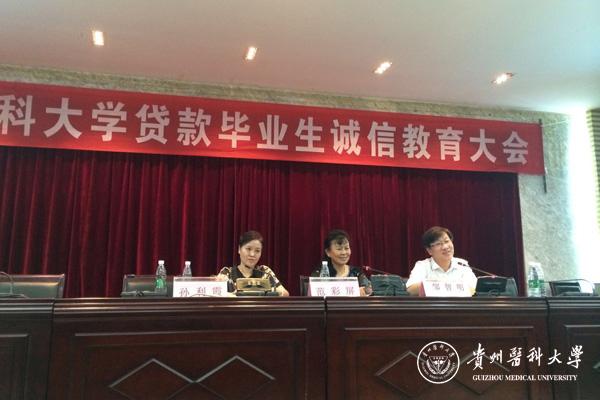 为进一步做好永利官网2016届贷款毕业生毕业还款工作,6月23日下午,永利官网2016届贷款毕业生诚信教育大会在北校区基础二号楼一楼报告厅召开。校长助理范彩屏、国家开发银行贵州分行的邹智明处长出席,会议由学生资助管理中心副主任孙丽霞主持。