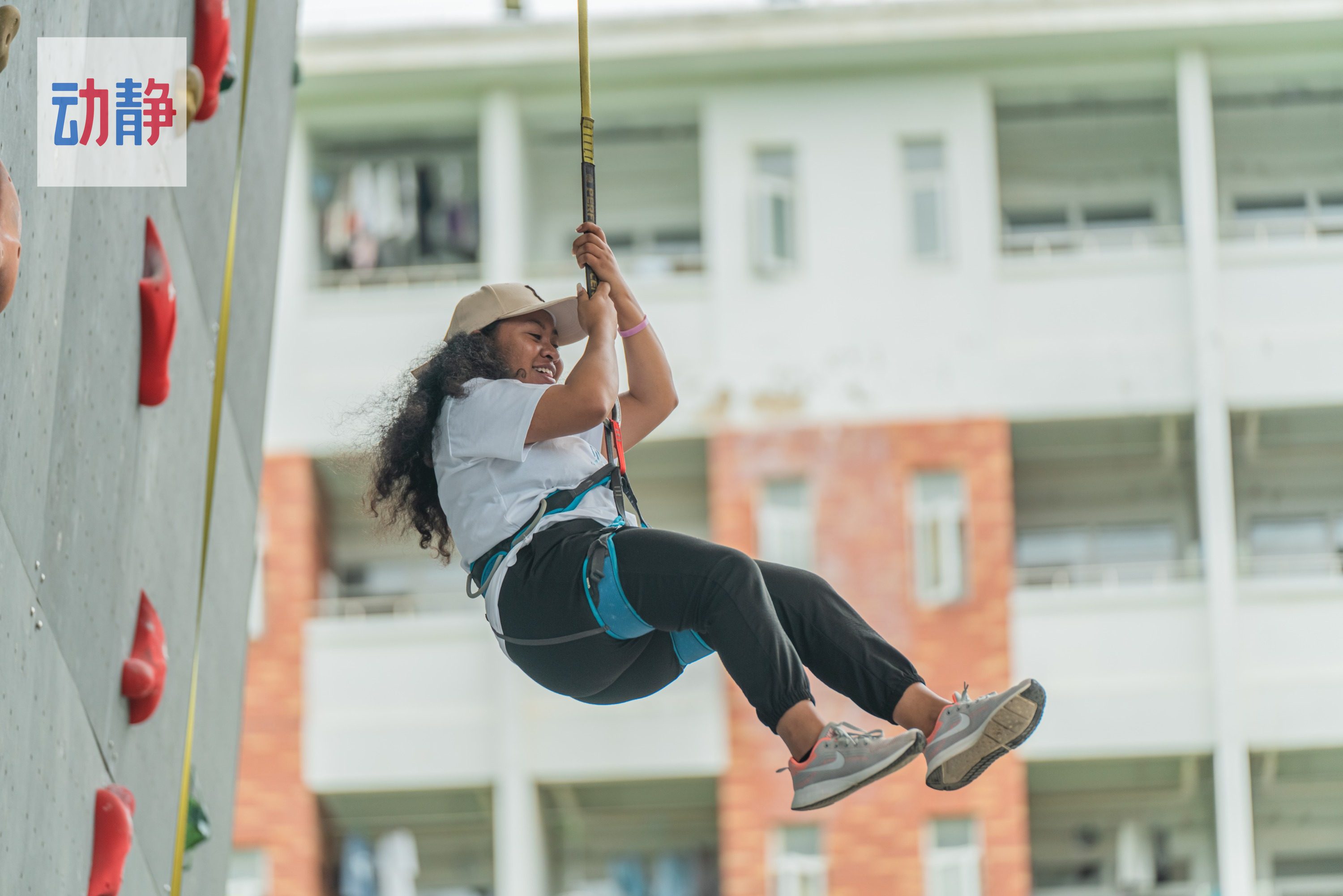 随后,同学们在77779193永利官网教师、国家攀岩集训队(贵州)主教练江玉辉与攀岩队队员的专业指导下体验攀岩运动。同学们积极参与活动,场下喝彩声、鼓励声、拍照声···交织在了一起,不分你我,彼此亲密无间。