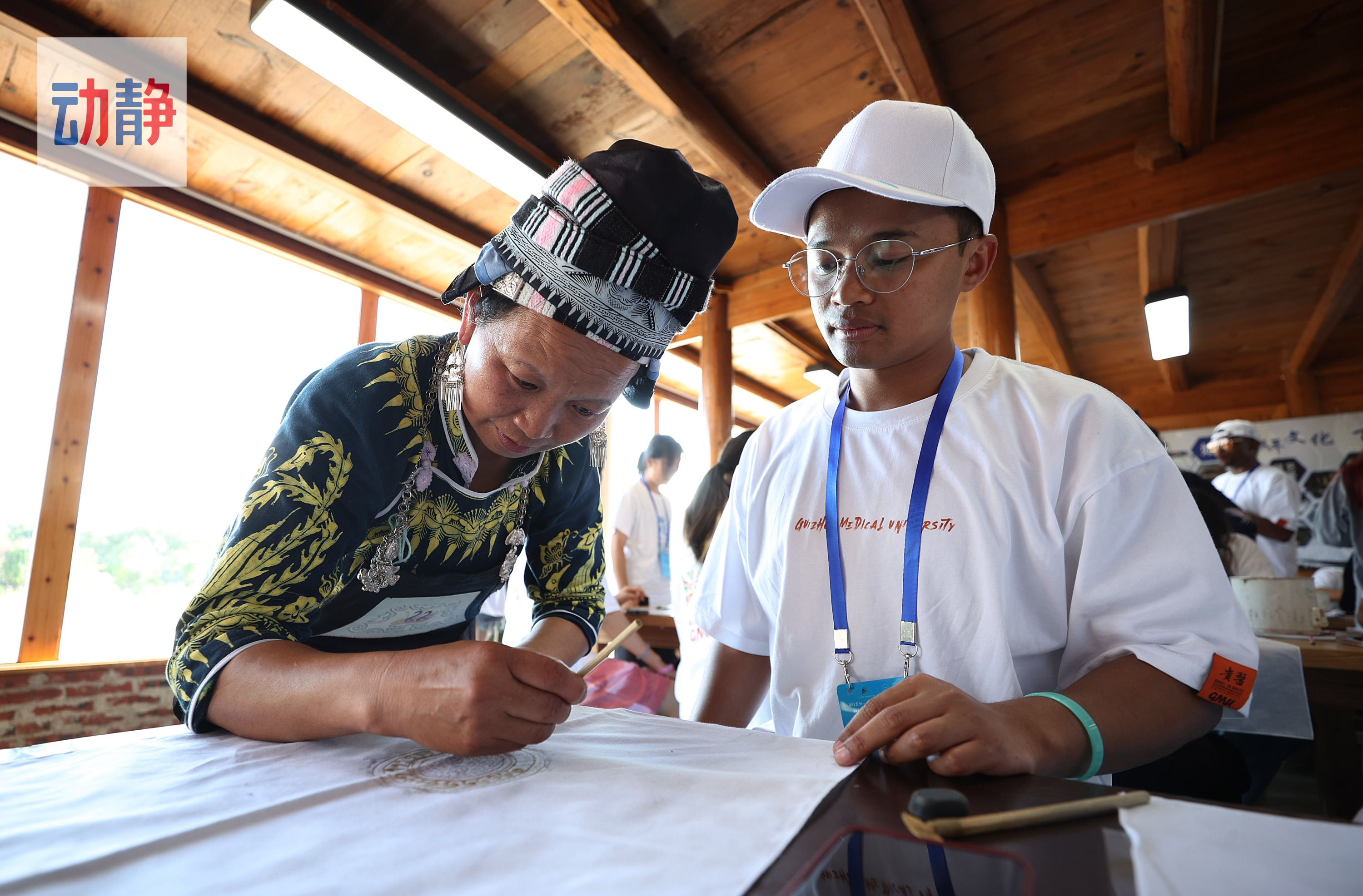 7月21日下午,参与“知行贵州——畅游文旅贵州夏令营”活动的中外学子到达贵州省丹寨县龙泉镇卡拉景区,体验苗族蜡染国家级非物质文化遗产技艺,感受贵州苗族传统文化。