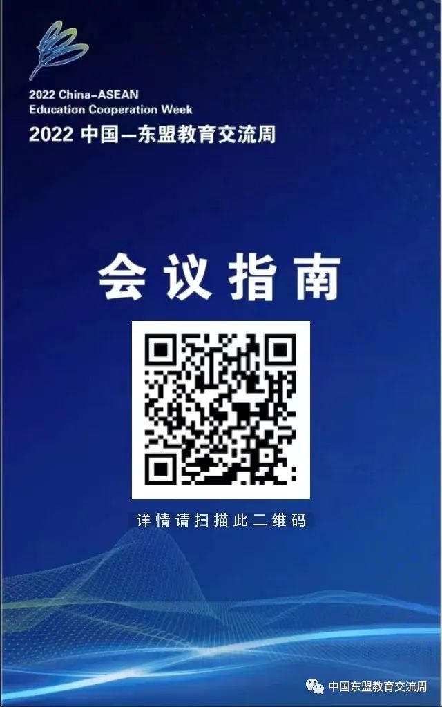 2022中国-东盟教育交流周将于8月22日至28日在贵州贵阳(贵安新区)交流周永久会址举行。交流周会议指南已上线,该指南详细提供了2022交流周的各项活动安排,更多内容详情,请扫描下方图片二维码。