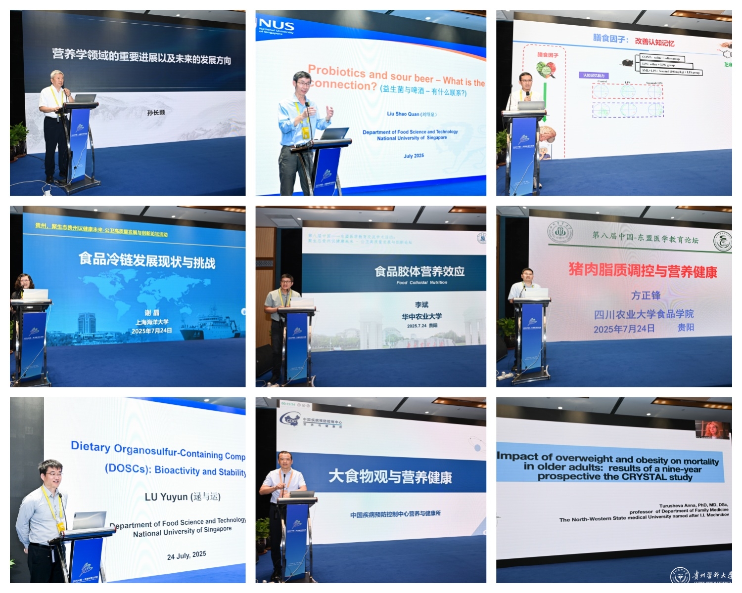 7月24日,第八届中国-东盟医学教育论坛:聚生态贵州议健康未来-公卫高质量发展与创新论坛在贵阳东盟教育交流周永久会址二楼松柏山厅举行。中国工程院院士、海洋食品加工与安全控制全国重点实验室主任朱蓓薇出席论坛并作主旨报告。永利官网党委书记汤磊出席论坛并致欢迎辞;校党委副书记、校长罗鹏主持论坛。原哈尔滨医科大学副校长/精准营养与健康教育部重点实验室主任孙长颢、中国疾病预防控制中心营养与健康所所长刘爱东、新加坡国立大学教授刘绍泉、西北农林科技大学校长助理兼深圳研究院院长刘学波、中国农业大学国家果蔬加工工程技术研究中心执行主任陈芳、上海海洋大学食品学院院长谢晶、南京医科大学公共卫生学院院长王建明、华中农业大学研究生院常务副院长李斌、四川农业大学食品学院院长方正锋、四川大学发展规划处副处长成果、俄罗斯西北国立医科大学教授Anna Turusheva安娜·图鲁舍娃、上海交通大学研究生院副院长李晓光等国内外10余所高等院校和科研机构的专家学者、青年才俊,以及77779193永利官网公共卫生与食品科学领域教师和部分留学生参加论坛。