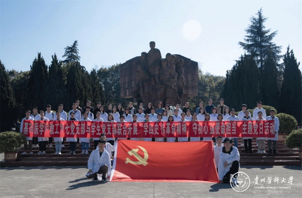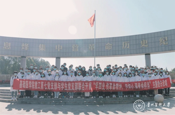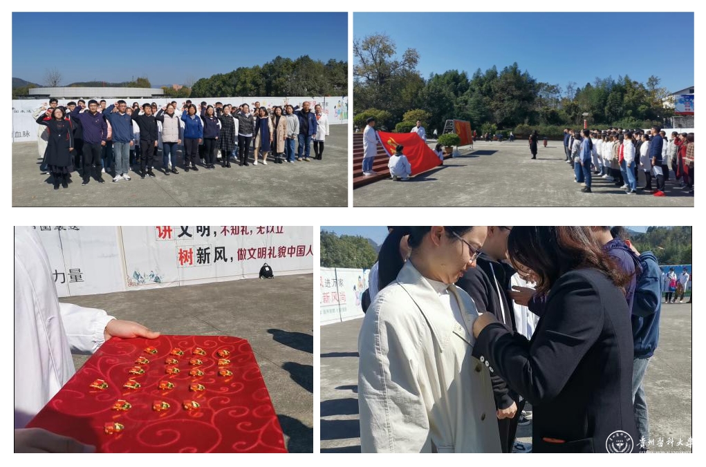 参观结束后,基础医学院党委副书记王妤煜表示,参观集中营是我们学习“四史”、进行爱国主义教育传承革命精神、强化使命担当的鲜活教材,我们要学习历史、铭记历史、传承历史,在发扬革命精神中笃定初心,为打好“十三五”的收官之战,谋划“十四五”的发展而砥砺奋斗。随后,全体党员面对鲜红的党旗,高举右手,在王妤煜带领下重温入党誓词,高昂的誓词中展现的新时代共产党员对革命先烈的庄严承诺。最后,教师党员为学生预备党员佩戴党徽,在阳光下熠熠生辉的党徽代表着革命精神的传承,是党员身份的展现,是教师党员对学生党员的嘱托。
