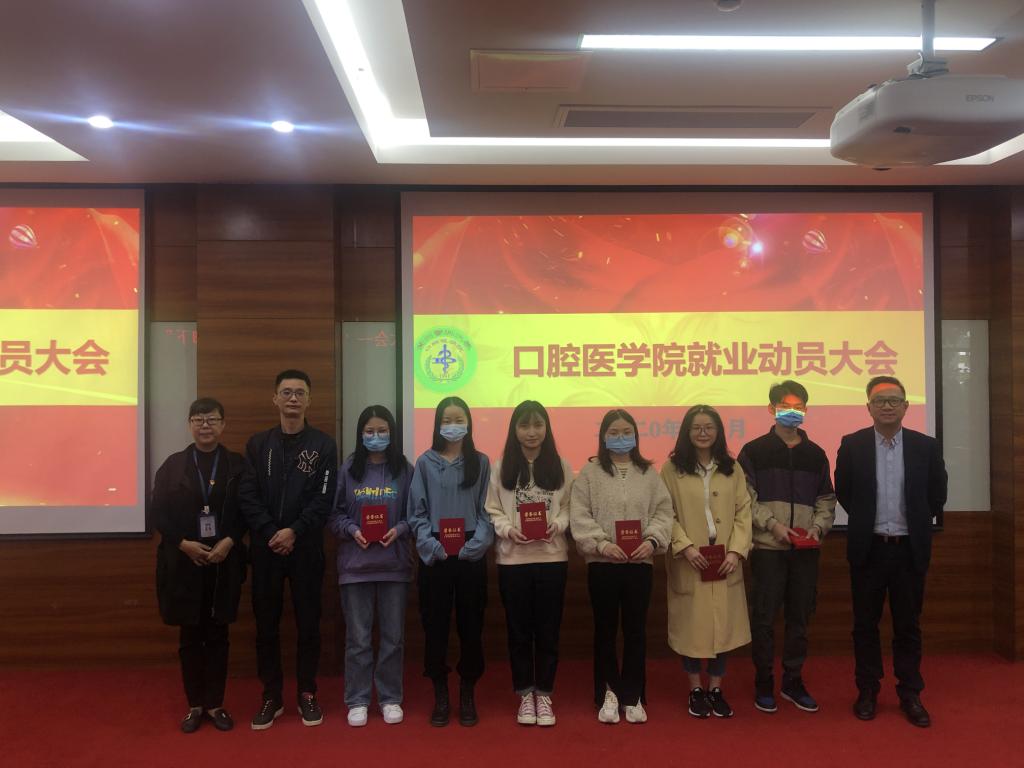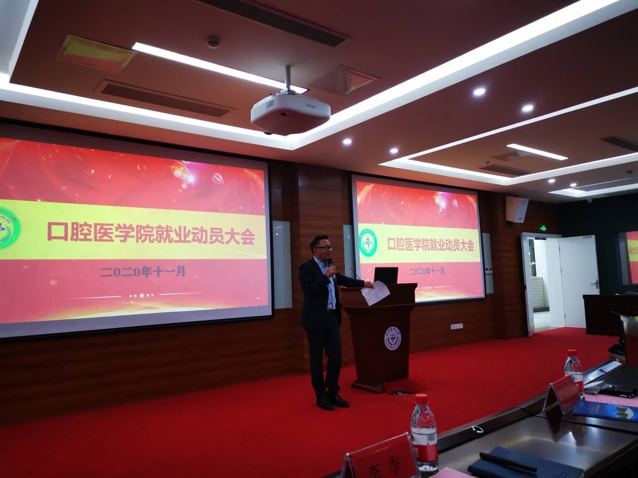 为让毕业生明晰当前严峻的就业形势,把握好就业机会,11月19日,口腔医学院2021届毕业班就业动员大会以“梦在心中,路在脚下”为题,在北校区临床技能中心207室召开。学校招生就业处副处长李季,口腔医学院党委书记张军梅,党委副书记、院长马洪出席本次会议,会议由学生管理科负责人张婷主持。