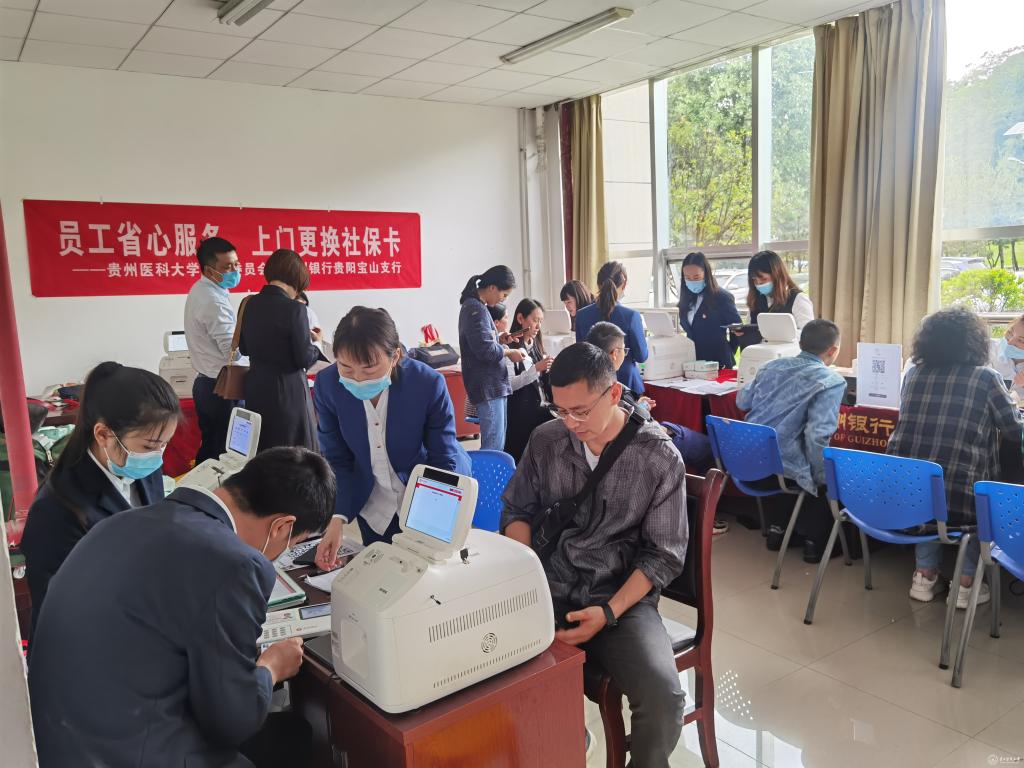 为方便永利官网教职员工升级更换第三代社保卡,校工会积极协调贵州银行来校为教职员工开展业务办理。