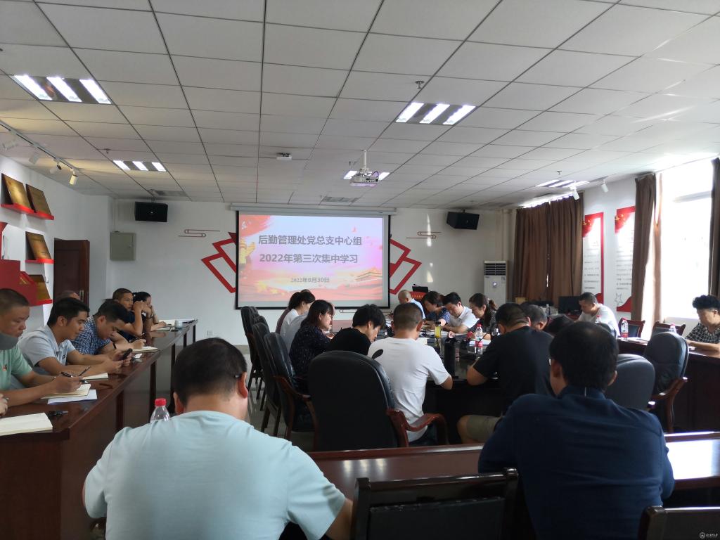 8月30日,后勤管理处党总支理论学习中心组在南校区颂雅楼五楼会议室进行第三次集中学习。会议由后勤管理处党总支书记张玲玲主持,全体党员及副科级以上干部列席。