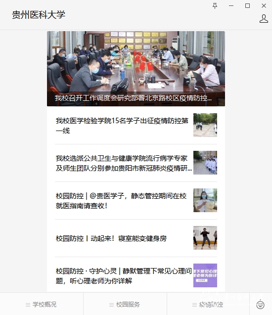 党委宣传部全体成员不分昼夜始终坚守疫情防控宣传工作岗位,充分利用官网、疫情防控专题网、官微、视频号、横幅、海报、液晶显示屏、LED屏、宣传栏、广播等向广大师生公布近期新冠肺炎疫情情况和学校防控工作动态,传达疫情防控相关文件、通知和工作安排,普及新冠肺炎疫情防控知识,宣传报道校园疫情防控工作的各项举措和贵医人的担当作为,做好正面舆论氛围营造和思想引导。截至9月15日,学校共发布疫情防控新闻、视频等581余条,其中学校官方平台报道290条,校内其他平台报道219条,校外媒体报道82条,各平台累计新闻浏览量约170万人次。