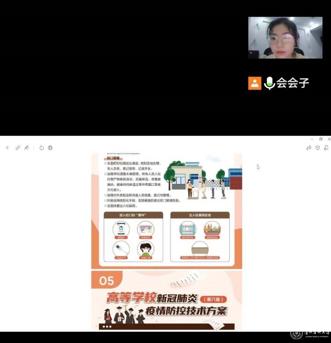 各班辅导员传达了习近平总书记关于疫情防控的重要讲话精神,解读了《新冠肺炎第九版防控方案操作手册》以及《高等学校新冠肺炎疫情防控技术方案(第六版)》,并传达学校疫情防控工作安排和要求,对重要内容作深入说明。
