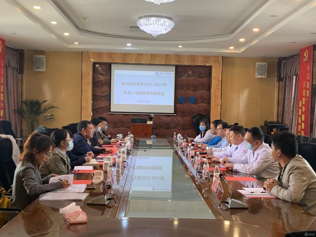为切实促进附属医院本科教学同质化建设,提升本科教育教学水平,11月3日,教学质量监控与评估办公室主任冯广卫带领本科教学工作督导委员会委员及教学质量监控与评估办公室工作人员赴附属安顺中心医院、贵航安顺医院(302医院)开展2022-2023学年第一学期本科教学中期检查。