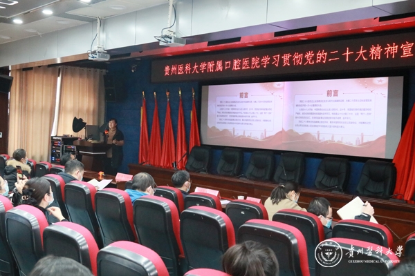 马洪在主持会议时指出,学习贯彻党的二十大精神是当前和今后工作中的重要任务,要求全院上下充分结合实际,常态化多样化开展党的二十大精神宣讲,确保学得深、悟得透、做得实,以饱满的精神状态和干劲推动口院高质量发展,助力健康中国建设。