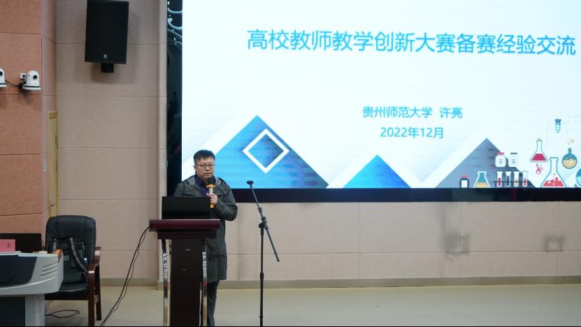 来自贵州师范大学的全国高校教师教学创新大赛正高组一等奖获得者许亮教授,以“教学创新大赛经验分享-课程特色与创新的思考”为主题,从教学创新大赛的背景、创新大赛的变化情况、第三届教学创新大赛的材料准备三个方面进行分享,重点介绍了如何梳理、凝练教学创新亮点,并结合参赛经历分享了课堂实录设计要点与注意事项。