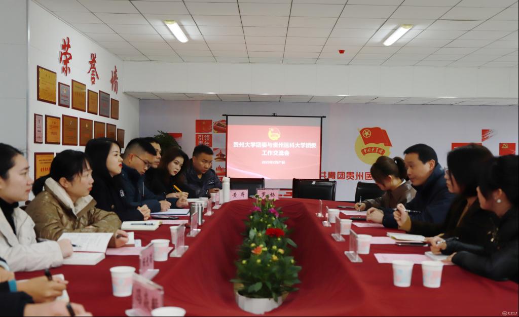 2月21日,贵州大学团委书记刘魁、副书记杨晓椿一行到永利官网团委调研交流共青团工作。永利官网团委书记王妤煜、副书记胡洪瑞、各科室老师参加座谈会。