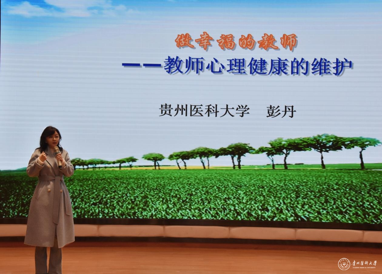 彭丹以《做幸福的教师——教师心理健康的维护》为题,围绕教师心理健康现状、教师心理健康重要性、教师心理健康标准、教师心理问题表现、教师心理问题原因及教师心理健康维护等方面展开。