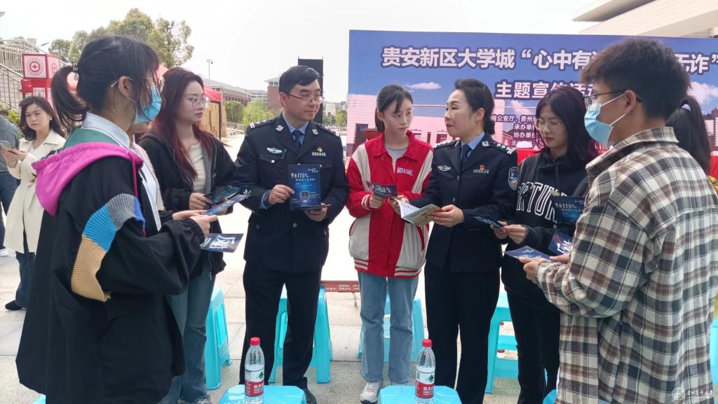 为进一步提升高校师生法治意识和法治观念,切实筑牢防范电信网络诈骗犯罪的坚固“高墙”。3月21日,由省公安厅、省教育厅、贵阳市公安局、贵安新区公安局主办的贵安新区大学城“心中有法 校园无诈”主题宣传活动在贵州财经大学举行。永利官网师生代表参加。
