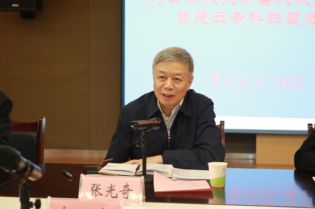 张光奇要求,大方县人民医院抓住机遇,在国家和省委、省政府相关政策扶持下,结合大方县人民医院实际情况,大力提升口腔诊疗技术水平、医疗队伍职称学历及科研能力,努力把大方县人民医院口腔科打造成为特色专科、亮点专科,为大方县人民群众的口腔预防保健提供保障。