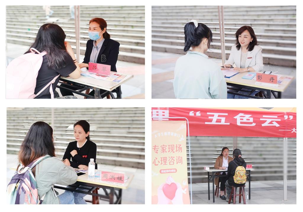 5月23日下午,心理中心主办,大学生心理健康协会和“温心之声”心理热线志愿者协会承办的心理“五色云”嘉年华活动在花溪校区喷泉广场举行。附属医院精神科副主任医师、国家二级心理咨询师及健康管理师吕翠受邀出席,永利官网心理中心专兼职教师参与。