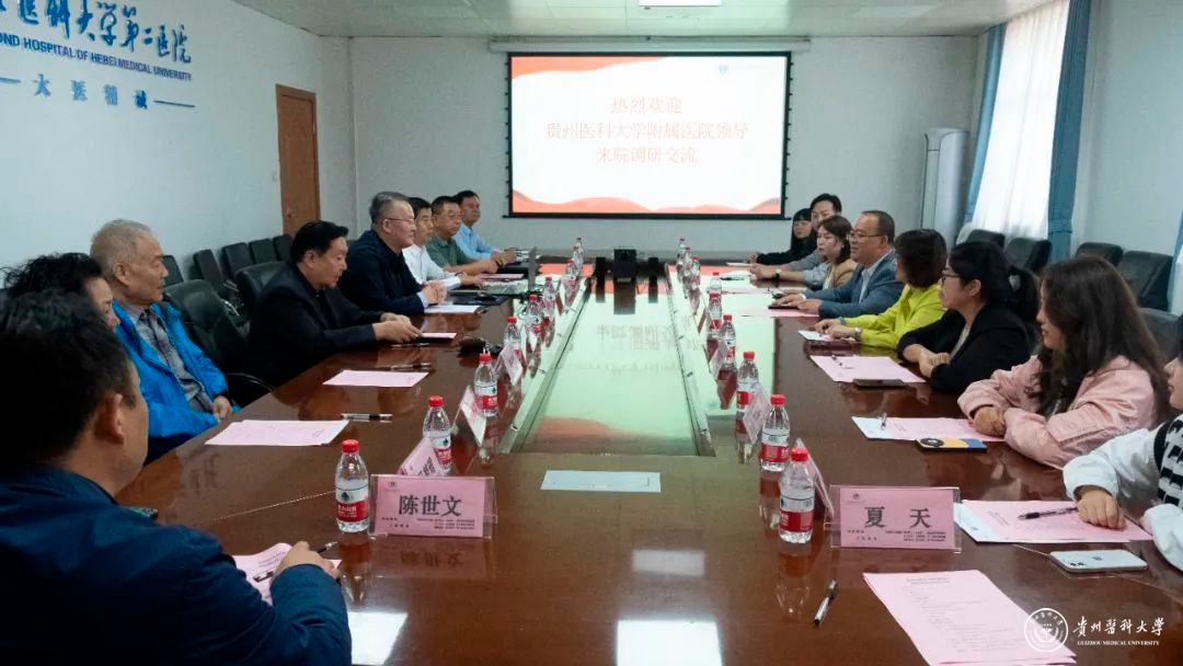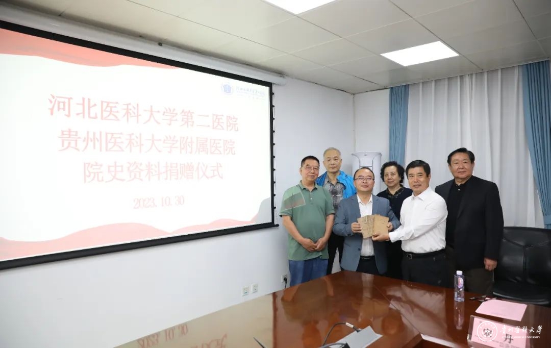 在河北医科大学第二医院,双方开展了座谈交流。河北医科大学第二医院党委副书记、纪委书记李立平,原党委书记、院史馆筹建负责人张万生,原副院长、院史专家刘怀军,原副院长、贵医校友刘震华教授和梁树今教授儿子刘苏,贵医校友张俊卿教授和李韵菊教授儿子张克亮、儿媳徐素欣,医院党委委员、党办主任梁韵佳,团委书记李岩,河北医科大学宣传部副部长马梦瑶,医院宣传部副部长陈世文出席。双方围绕两院的历史渊源、宣传思想文化、团委工作以及院史馆筹建等开展交流,分享彼此的经验做法。