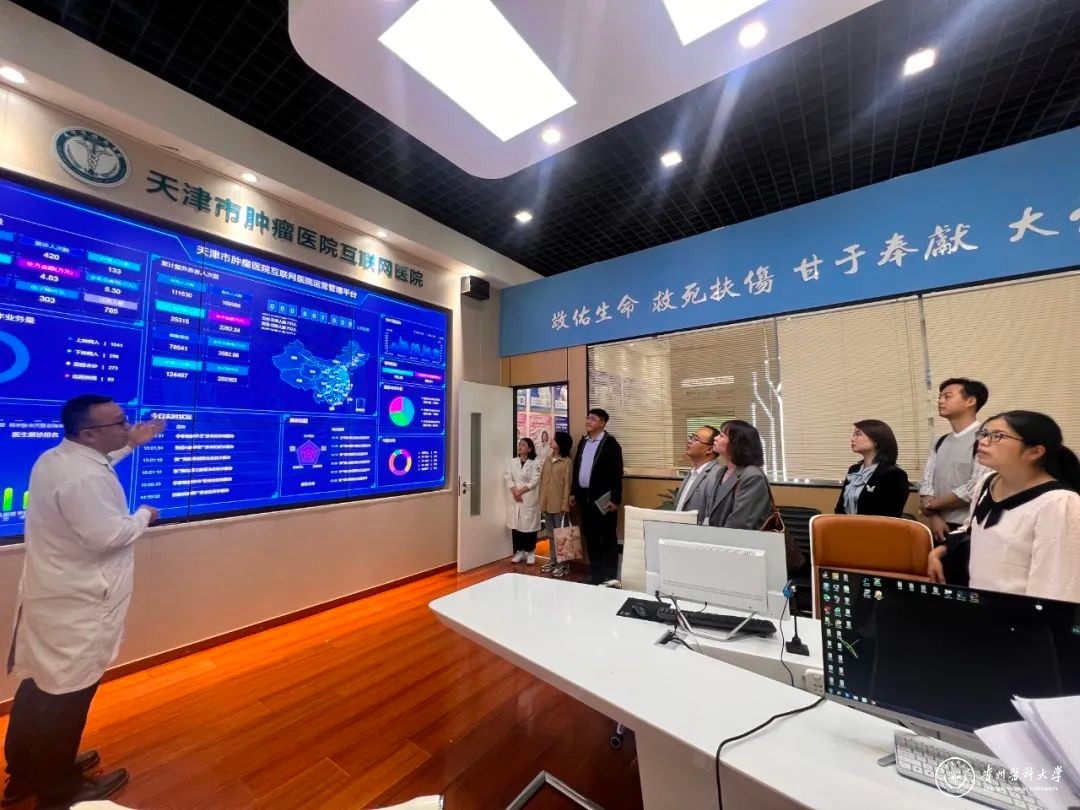 在天津医科大学肿瘤医院,吴祥文一行参观了天津医科大学肿瘤医院互联网医院、文化长廊、院史馆。