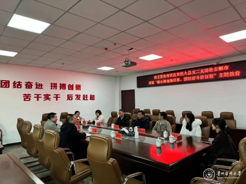 11月27日,农工党贵州省直贵医大总支二支部主委、附院消化内科副主任杨杰博士带队赴安顺开展“凝心铸魂强根基 团结奋进新征程”主题教育。农工党安顺市委会专职副主委袁源,副主委吴玲、周劲峰出席会议。安顺市人民医院、旧州镇卫生院相关领导和医师参加活动。