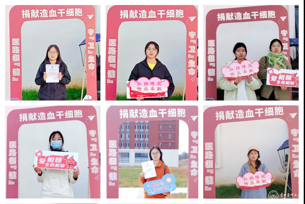 多年来,学校始终秉承“人道、博爱、奉献"的精神,2012年发起无偿捐献造血干细胞活动,打造“医路相‘髓’,守‘卫’生命”志愿服务项目,截止目前已有6500余名贵州省红十字造血干细胞志愿者登记入库,数量居全省各高校前列,近几年增速排全省高校首位。从2011年第一例捐献成功,目前已有42名贵医人接力爱心,成功挽救来自全国地白血病患者的生命,受捐患者从7岁到49岁不等。
