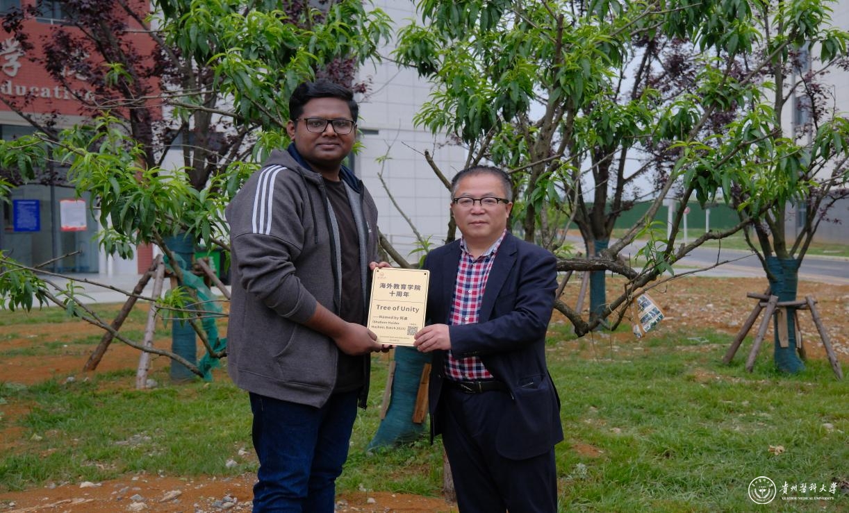 在活动现场,师生们纷纷写下对学校、学院的美好祝福,挂在了以“Tree of Unity”(和谐树)为名的桃树下,在回溯海外教育学院十年精彩瞬间的照片墙下合影。