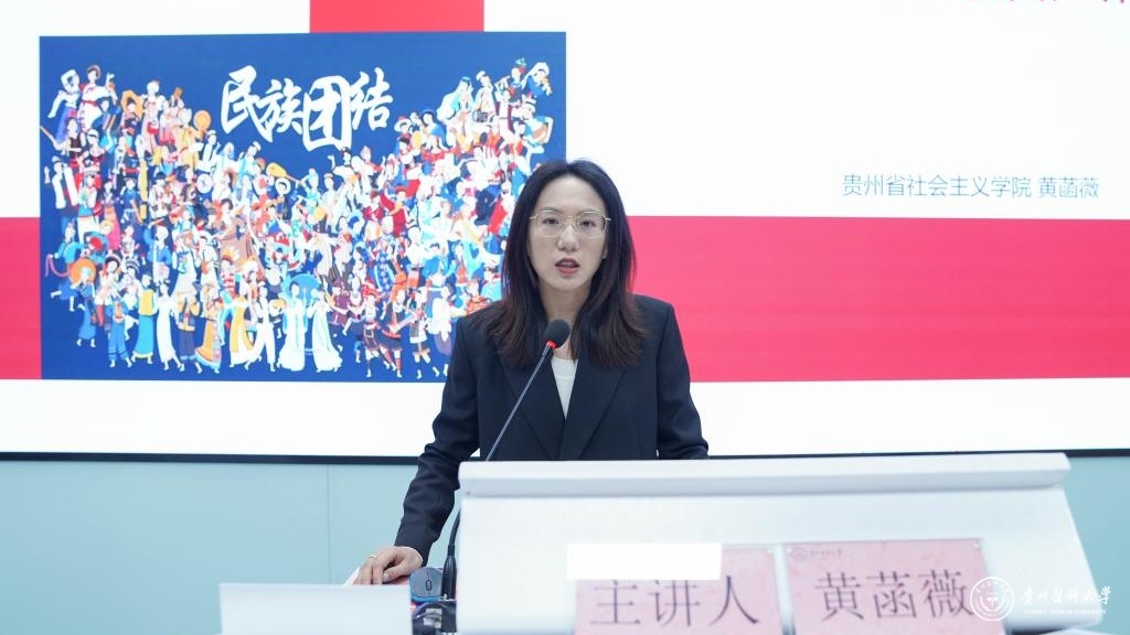 黄菡薇围绕习近平总书记关于加强和改进民族工作的重要思想和民族工作的重要性,重点讲解铸牢中华民族共同体意识的概念的形成、重要意义以及基本任务,用形象生动、通俗易懂的语言让师生理解把握铸牢中华民族共同体意识的深刻内涵和现实意义,引导和帮助教职医护员工生准确牢固树立休戚与共、荣辱与共、生死与共、命运与共的共同体理念,将铸牢中华民族共同体意识内化于心、外化于行。