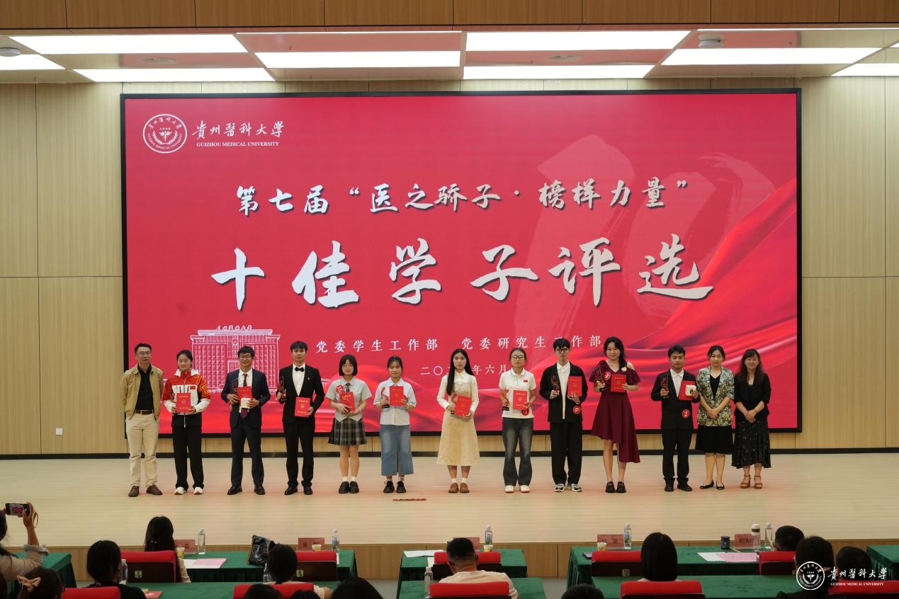 点亮闪光青春,凝聚追光力量。6月12日,永利官网第七届“医之骄子· 榜样力量”十佳学子评选展示活动在云漫湖校区道德讲堂圆满举行。活动由党委学生工作部(学生处、武装部)、党委研究生工作部共同举办,旨在充分发挥优秀学子的先进典型示范带动和价值引领作用,引导广大贵医青年成长为德才兼备、全面发展、堪当重任的时代新人。