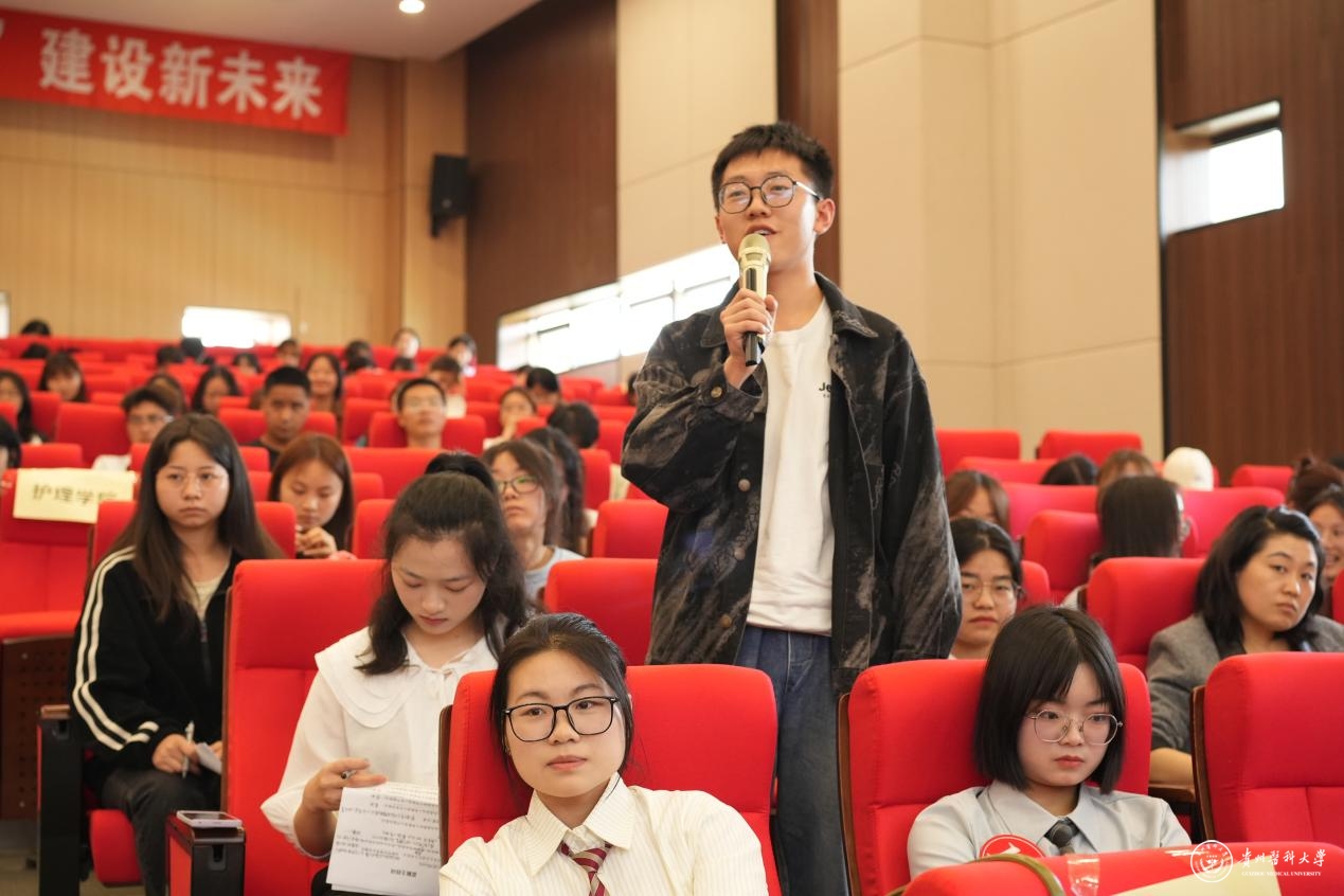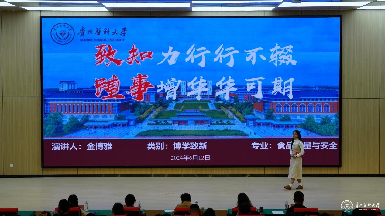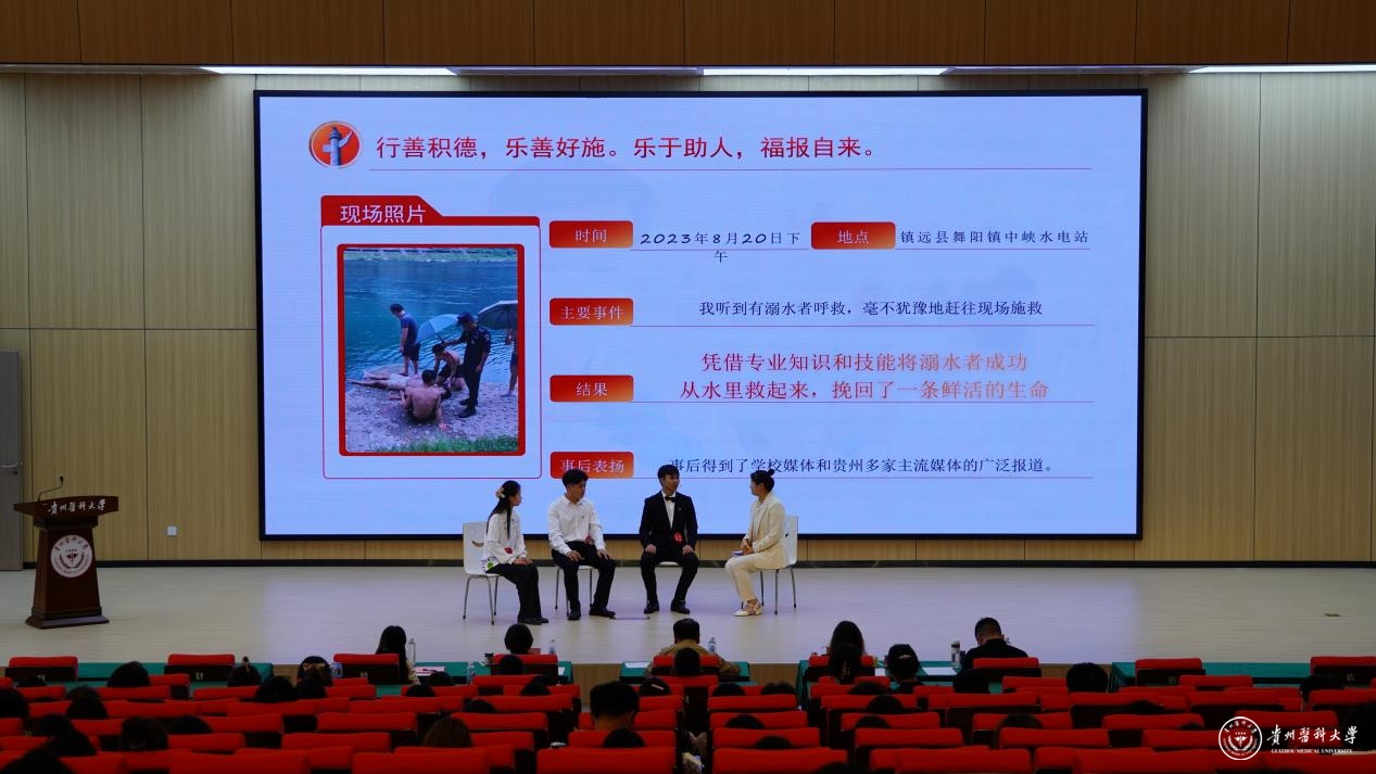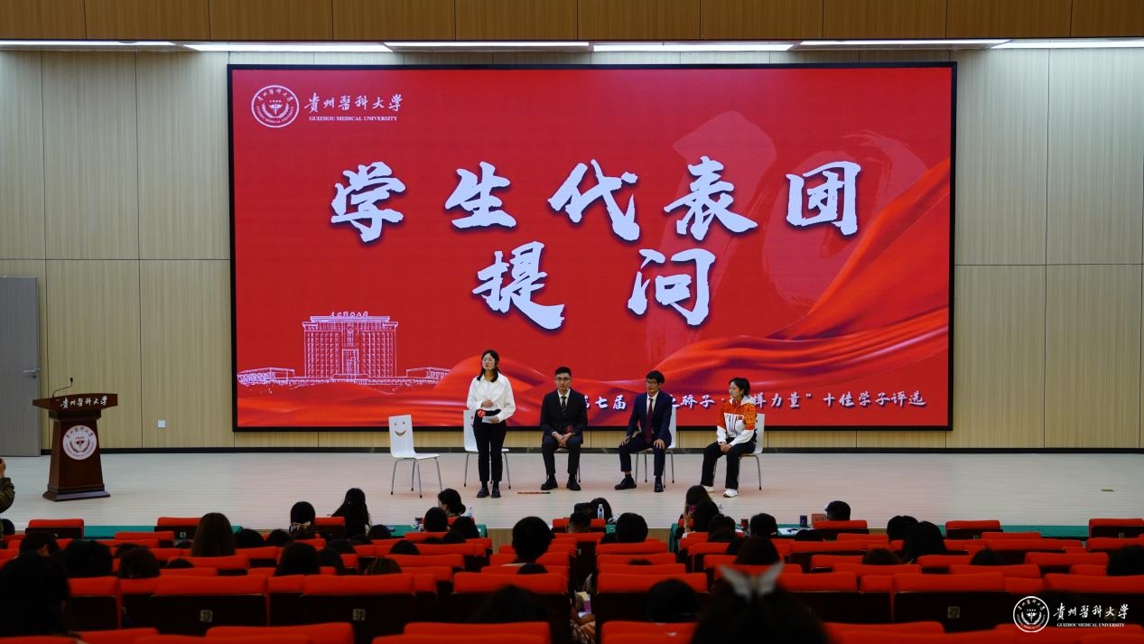 现场氛围热烈、精彩纷呈,他们中有人成绩优异,投身科研创新,多篇论文发表在SCI等核心期刊,并将学术成果转化于产业发展;有人投身志愿服务,支教乡村助力基层教育,研发产品助力乡村振兴,帮助农民增收致富;有人危难时刻见义勇为、舍身救人,用自己的微光点亮他人生命;有人奋力拼搏,突破自我,用亚运会金牌书写家国荣誉……选手们的优秀事迹真实生动,催人奋进,充分展现了贵医学子坚定的理想信念、昂扬的精神面貌、潜心钻研的科研品质、勇于创新的探索精神和乐于奉献的社会责任感。