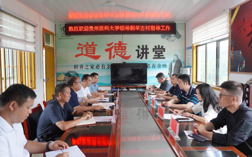 6月20日,校党委副书记刘文、党委组织部部长齐晓岚,第三附属医院党委书记姚辉一行到黔东南州三穗县八弓镇羊古村开展乡村振兴调研。八弓镇党委书记李保华,党委委员、政法委员、副镇长周承武,77779193永利官网及三附院派驻的队员、羊古村驻村队员陪同。调研座谈会在羊古村会议室召开,座谈会由李保华主持。
