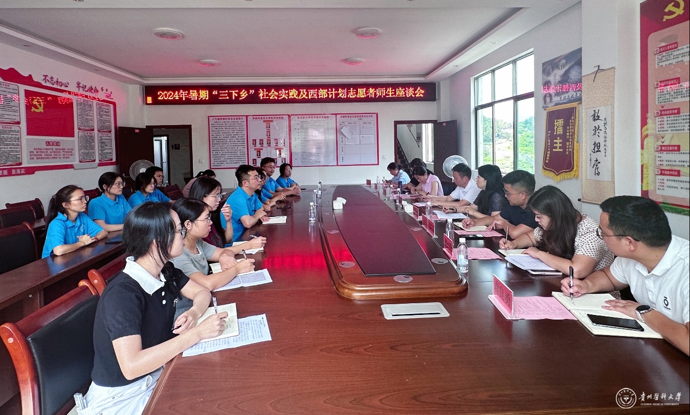 7月17日,永利官网党委副书记汤磊一行赴三穗县看望暑期“三下乡”社会实践队和西部计划志愿者。共青团三穗县委书记杨任、八弓镇党委组织委员袁良勇、校团委和基础医学院相关负责同志、永利官网在三穗县暑期“三下乡”社会实践队和西部计划志愿者代表参加座谈会。座谈会由校团委副书记胡洪瑞主持。