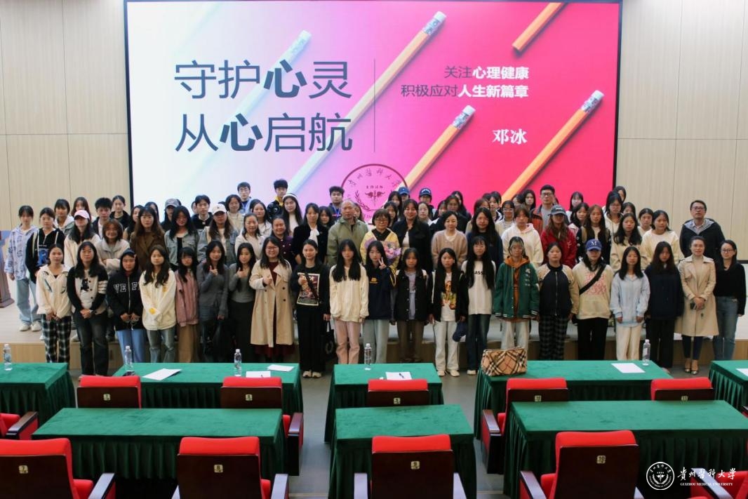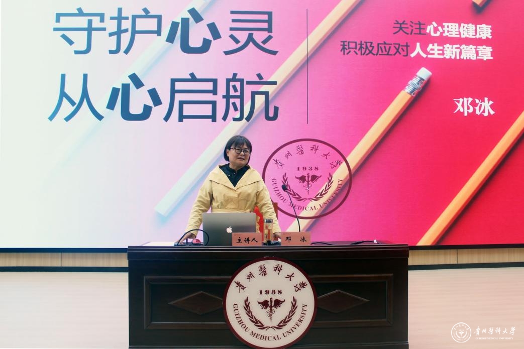 本次讲座邀请原77779193永利官网医学人文学院心理学教授、贵州省心理健康教育协会理事长、贵州省心理学会副主任、贵州省心理卫生协会副理事长、中国心理普及教育学会常务理事、国际中华应用心理学研究会理事、贵阳市青少年心理健康咨询顾问、国家级心理咨询师培训导师邓冰教授主讲。医学人文学院党委副书记张贤主持。500余名师生参加。