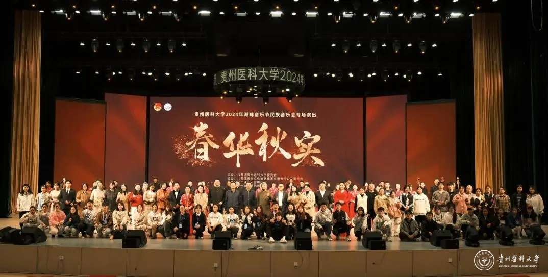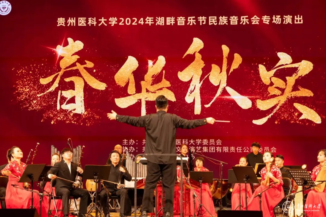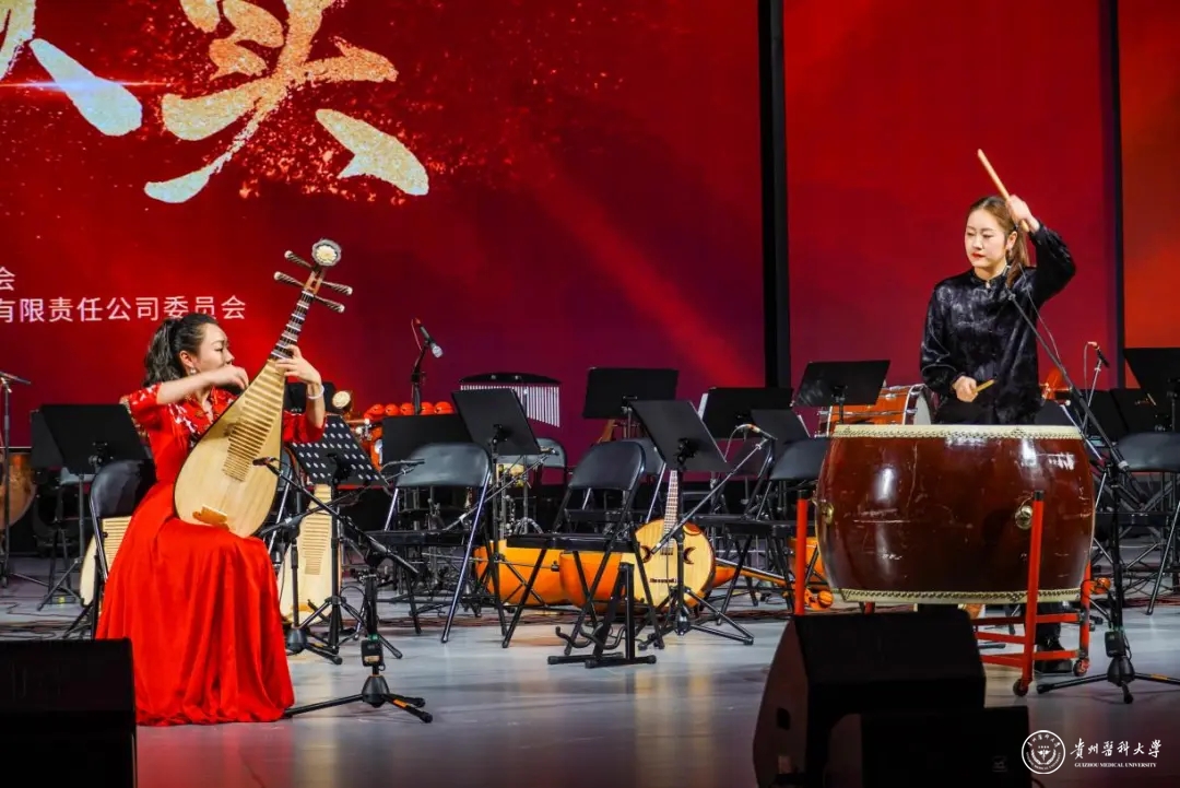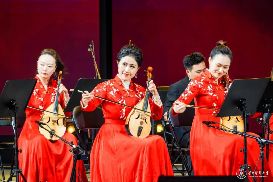 最后,由男女声二重唱与乐队共奏的《领航》压轴出场,用昂扬的曲调表达着对党和祖国的美好祝福,抒发青年始终心系家国的情怀。演出结束后,场内掌声经久不息,这不仅是一场民族音乐会,更是一次沉浸式的艺术思政课,让医学生感受到了民族乐的多样性,提高了医学生的人文素养。感谢贵州省民族乐团的精彩演出,感谢乐团的艺术家们用精湛的技艺和深情的演绎,为师生打开了一扇通往民族音乐瑰宝的大门。
