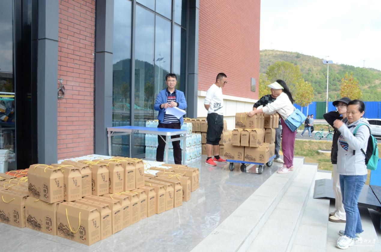 到达活动终点,参赛教职工领取了校工会准备的奖品。为了开展好此次活动,校工会和学校相关职能部门及各二级学院进行了精心筹备,并采购学校定点帮扶县三穗特色农副产品作为奖品,助力乡村经济发展的同时,优化教职工福利,活动取得圆满成功。