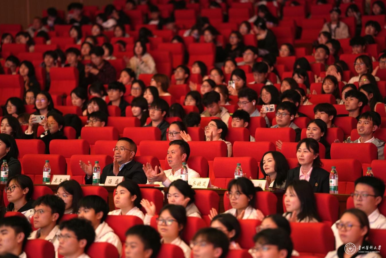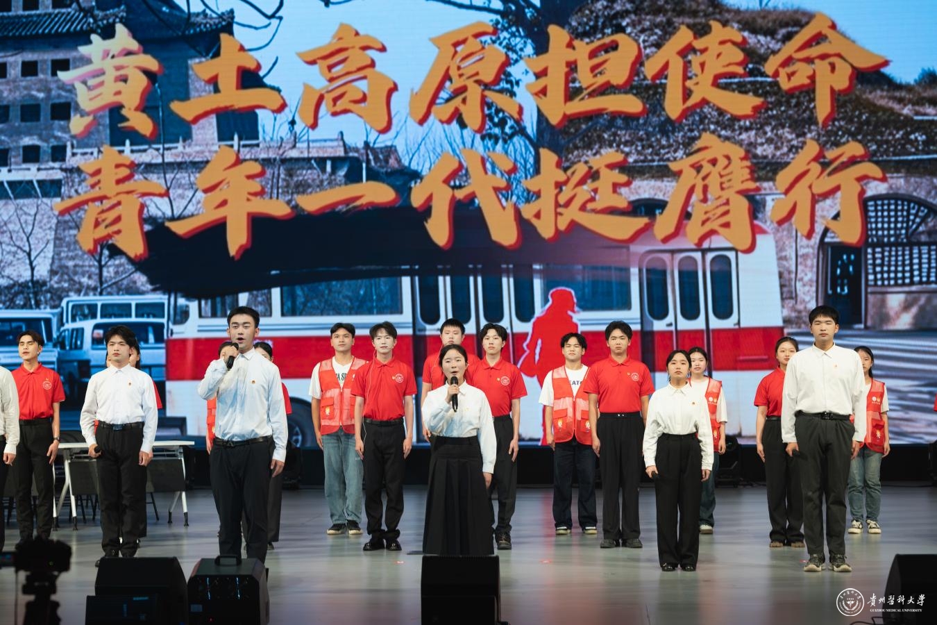学校青马宣讲团和青年媒体中心带来艺术式宣讲《青春奋斗梦想》。宣讲者们紧密围绕习近平总书记考察贵州重要讲话精神,立足青年视角讲述了青春的使命、奋斗的意义和梦想的力量。情感真挚、状态饱满、催人奋进的宣讲内容,展现了贵医青年昂扬向上的精神风貌,赢得了现场观众阵阵掌声。学校新团员代表齐举右手,台上台下的贵医青年共同进行庄严的入团宣誓。铿锵誓词既是对团组织的忠诚宣告,也是对未来敢于担当、勇担使命的承诺。