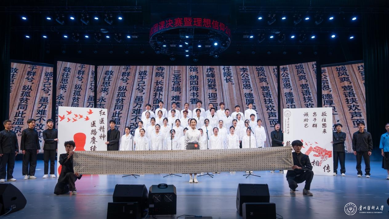 此次决赛的思政课堂以“情景式”为核心,各参赛团队紧扣主题、匠心呈现,巧妙融合沉浸式表演、铿锵快板、动感舞蹈、深情歌唱等多种艺术表现形式,带来了《青春逐梦非遗路,黔境焕彩映华光》《百年红色光影,赓续红医精神》《探秘苍穹之光—中国天眼背后的青年担当》《无声的证言》等一系列精彩纷呈的团课内容,将思政理论转化为青年喜闻乐见的“青春叙事”。