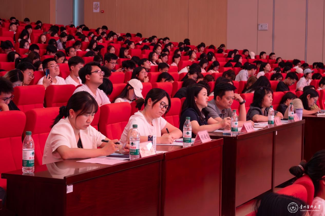 6月11日,永利官网2025年“青春为中国式现代化挺膺担当”青年情景式思政团课决赛暨理想信仰公开课示范课在云漫湖校区大礼堂举行。校团委书记王妤煜,贵阳康养职业大学学工部部长、团委负责人黄卫,贵州大学团委副书记杨晓椿,贵州师范大学团委副书记尹瑶,贵州电子科技职业学院团委书记杨溪担任比赛评委,校团委全体工作人员、各学院团委负责人、团总支书记、各学院学生代表,以及贵州中医药大学、贵州理工学院、贵州轻工职业技术学院的学生会代表等1800余人参加。
