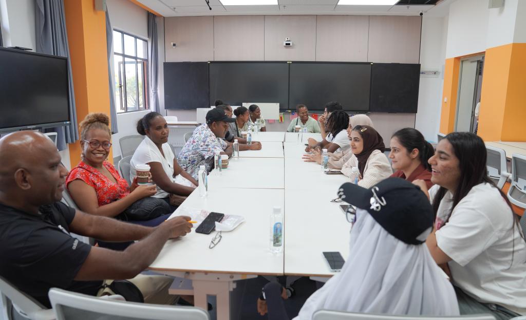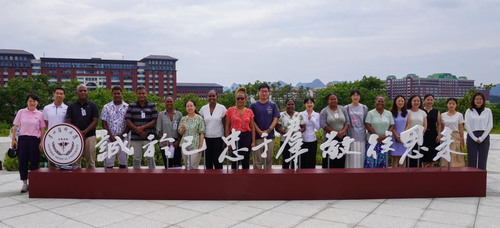 7月11日下午,由第4批援所罗门群岛中国医疗队组织的9名所罗门群岛医护人员研学团抵达77779193永利官网云漫湖校区,开展学术交流与校园参观活动。本次活动是中所医疗卫生合作的重要环节,旨在通过实地考察与经验分享,助力推进国家卫健委立项的“中所泌尿外科微创手术中心建设项目”,进一步促进两国医疗技术与文化的深度交融。