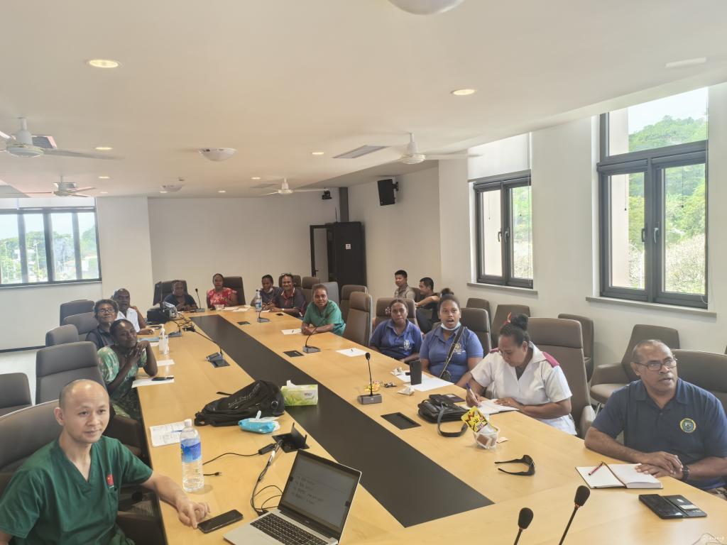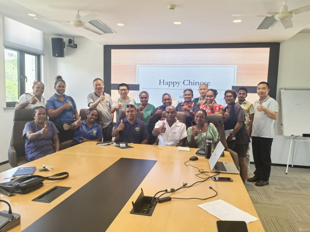 7月17日中午,在所罗门群岛国家转诊医院综合医疗中心三楼会议室,一场别开生面的汉语课正在进行。这是援所罗门群岛中国医疗队首次在国家转诊医院开设对外汉语教学课程,标志着医疗援助从“技术输出”迈向“文化交流”的新篇章。
