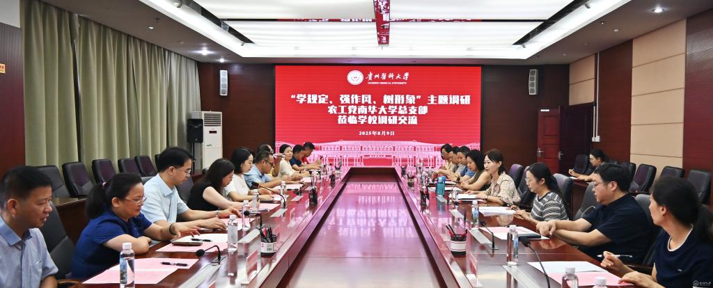 为深入学习贯彻“学规定、强作风、树形象”主题教育要求,进一步加强民主党派基层组织建设,8月9日,衡阳市人大常委会委员、农工党市委会专职副主委肖琳带队农工党南华大学总支部一行莅临永利官网开展调研座谈。座谈会由校党委委员、党委宣传部(精神文明办)部长(主任)、党委统战部部长陈颖主持,农工党贵医总支部副主委刘丽荣、杨杰,民盟贵医委员会主委朱海涛,部分农工党党员代表参加。