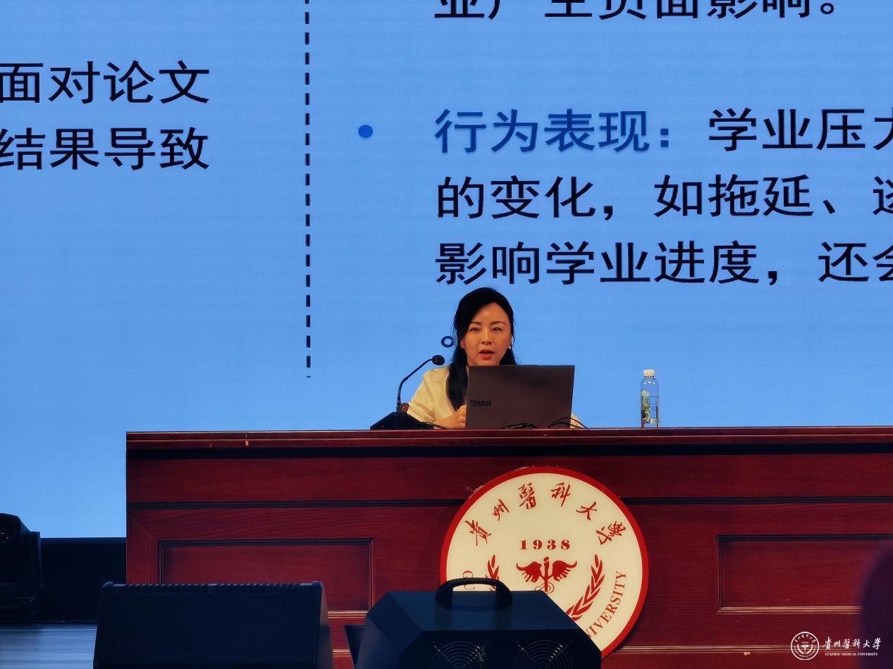 医学人文学院副院长、心理健康咨询中心的副主任彭丹为新生做心理健康专题讲座,指导同学们如何调适心态、积极沟通,保持良好科研状态和身心健康。